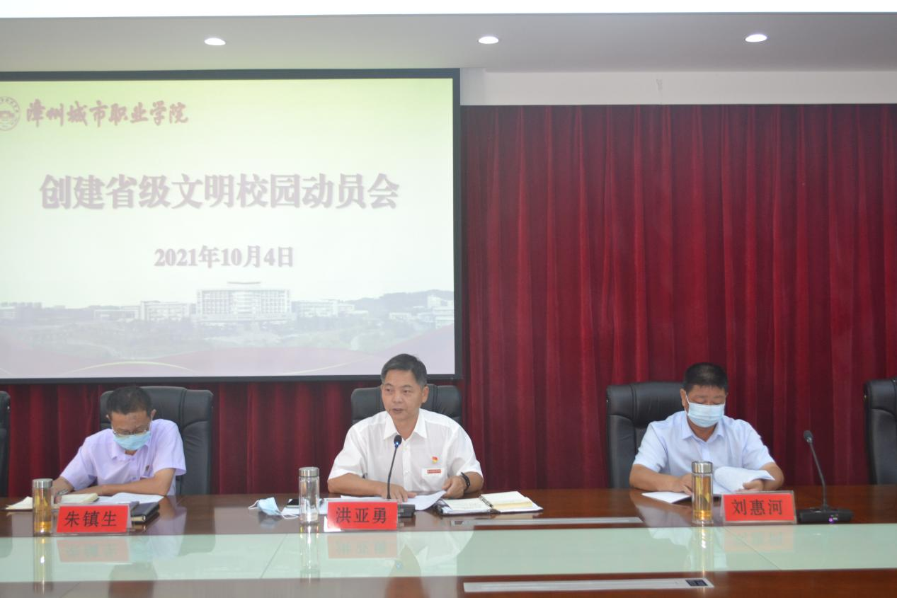 2021年10月4日,学院党委书记洪亚勇主持召开创建省级文明校园动员大会。学院党委委员、各处(室)负责人、各系(部)党政负责人、各党支部书记参加会议。
