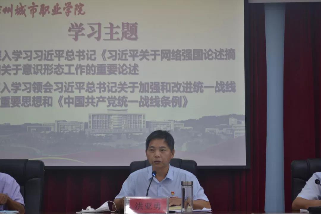 洪亚勇指出,网络安全和信息化是事关国家安全和国家发展、事关广大人民群众工作生活的重大战略问题,掌控网络意识形态主导权,就是守护国家的主权和政权。学院各级党组织和党员干部要把维护网络意识形态安全作为守土尽责的重要使命,切实维护学院网络安全、政治安全。各级党组织要充分认识做好新时代统一战线工作的重要性,全面准确学习领会党的统战理论方针政策,切实履行做好统一战线工作的主体责任,认真抓好《条例》学习宣传和贯彻落实。