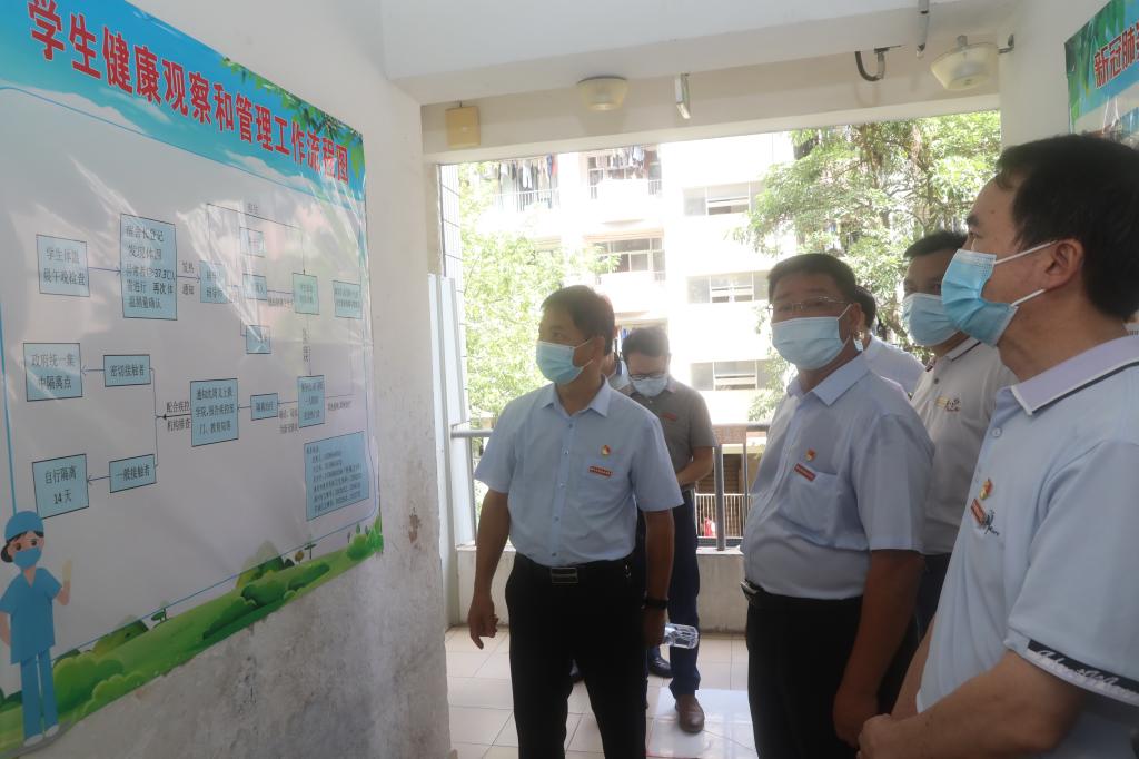 会前,党委书记洪亚勇、院长刘惠河带队深入通鑫公寓健康管理和观察室,看望入住学生,检查观察室管理情况并现场做了指导。