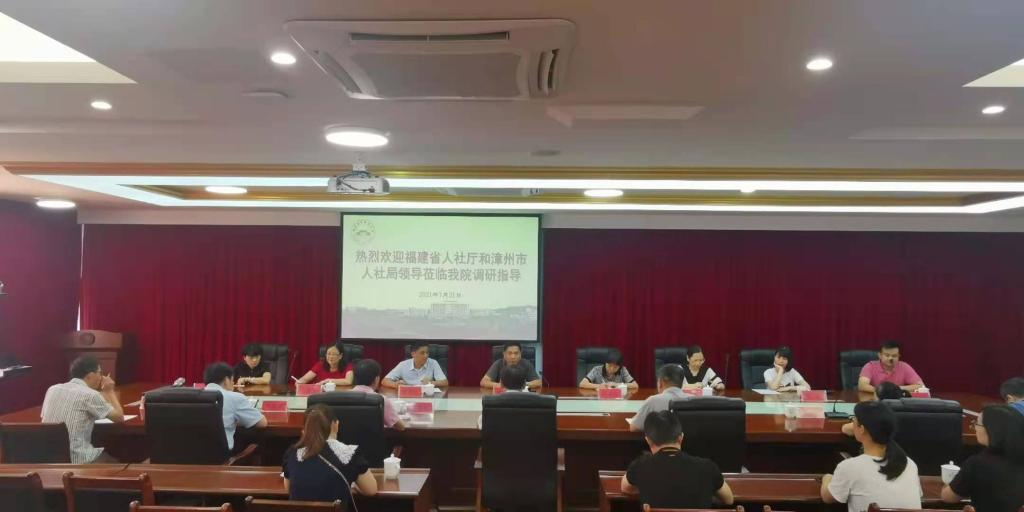 2021年7月21日下午,福建省职业技能鉴定指导中心陈捷主任、福建省人社厅职业能力建设处二级调研员陈育红一行,在漳州市人社局林贵达副局长等领导陪同下莅临我院调研指导省赛准备工作。
