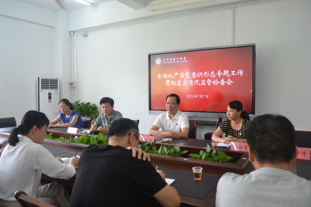 为落实全面从严治党,坚守意识形态领域阵地,根据学院党委的部署安排,在学院党委工作部监督检查的基础上,学院纪委书记李德胜带队于2021年7月7日上午到园林园艺系食品工程系和电子信息工程系,围绕学院全面从严治党意识形态专项工作再监督检查。