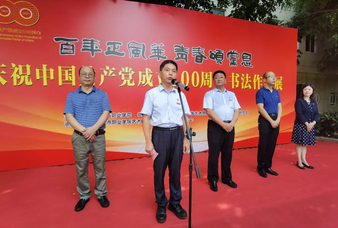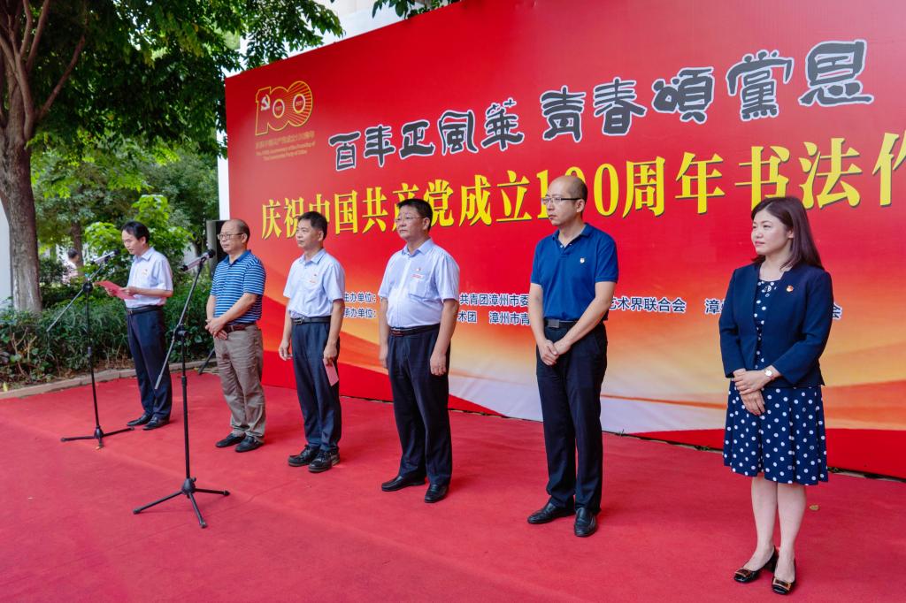 百年历程,光照千秋。为庆祝中国共产党百年华诞,6月28日上午,“百年正风华 青春颂党恩”庆祝中国共产党成立100周年书法作品展在漳州城市职业学院游艺楼开幕。此次书法作品展由漳州城市职业学院、共青团漳州市委、漳州市文学艺术界联合会、漳州市青年联合会共同主办,漳州城市职业学院艺术团、漳州市青年书法家协会承办。