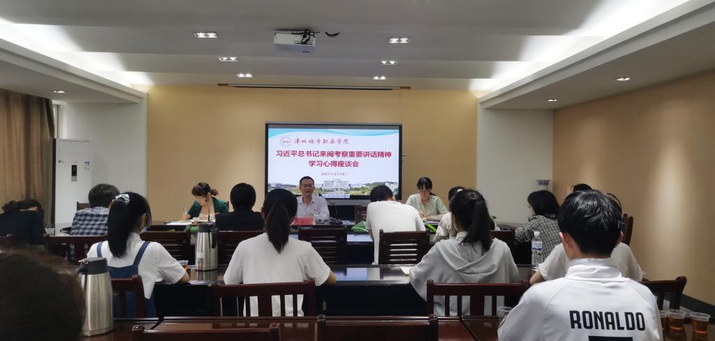 2021年4月14日下午,共青团漳州城市职业学院委员会在怀仁楼7楼会议室,举行习近平总书记来闽考察重要讲话精神学习心得交流座谈会。学院党委副书记朱镇生、各系团总支书记、团学工作负责人、学院团委会老师,以及各系团员青年代表参加座谈会。学院团委会副书记吴燕燕主座谈会。