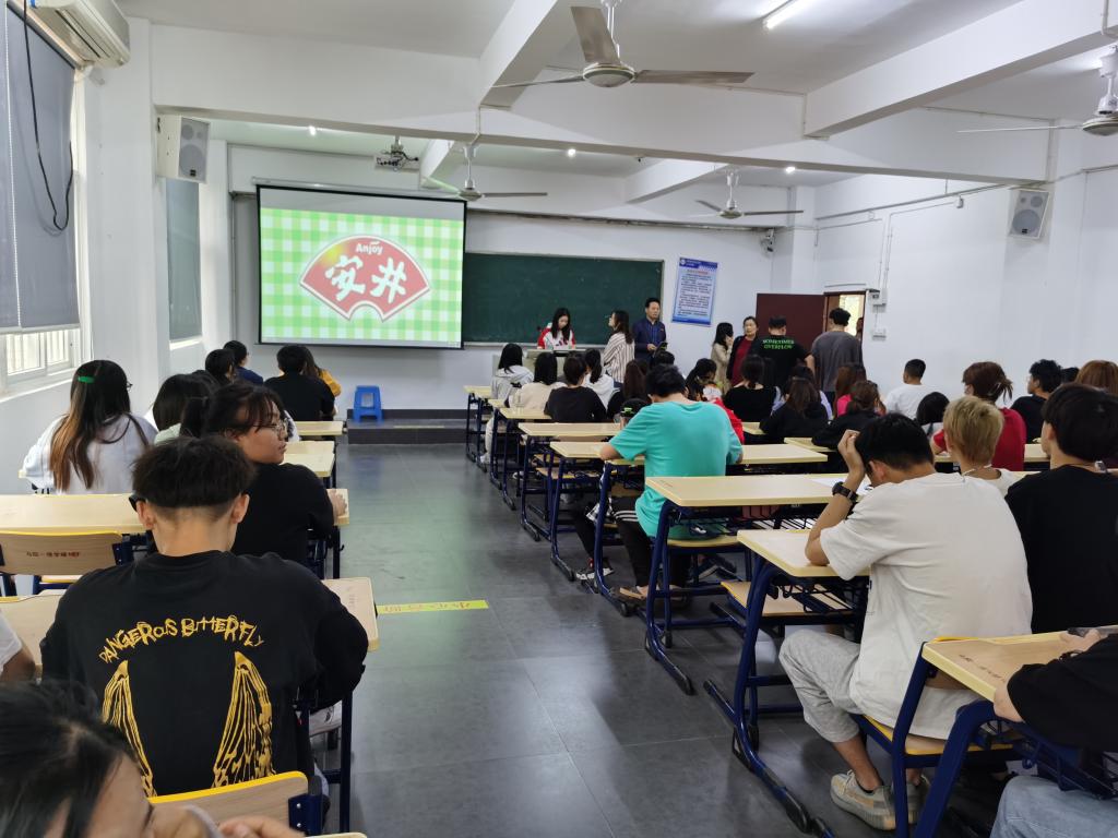 本次专场招聘会还进行了企业现场宣讲。宣讲的企业分别是安井食品股份有限公司、宏全国际集团、丹夫食品有限公司、豪士(福建)食品有限公司。企业通过宣讲会形式,把更为直观的企业价值理念、职业晋升通道以及同学们所关心的薪资待遇等问题一一现场作答,近距离接触毕业生,使企业与学生之间达到最佳的沟通、交流效果。