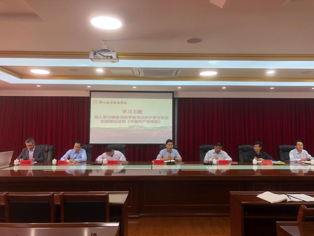 4月6日,漳州城市职业学院召开党委理论学习中心组2021年度第五次学习会议,深入学习领会习近平总书记关于学习党史的重要论述和《中国共产党章程》。学院党委书记洪亚勇主持会议,党委副书记、院长刘惠河等学院党委班子成员与列席人员参加了学习。