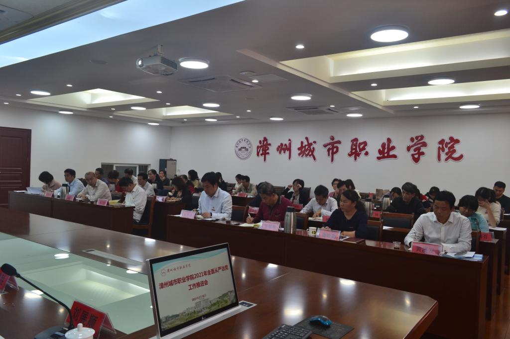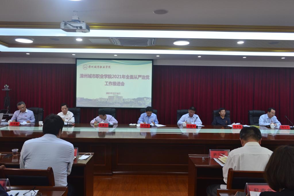2021年3月16日,漳州城市职业学院在怀仁楼4楼会议室召开2021年全面从严治党工作推进会,学院党委委员、各处(室)、系(部)负责人、各党组织书记参加会议。会议由学院党委副书记、院长刘惠河主持。