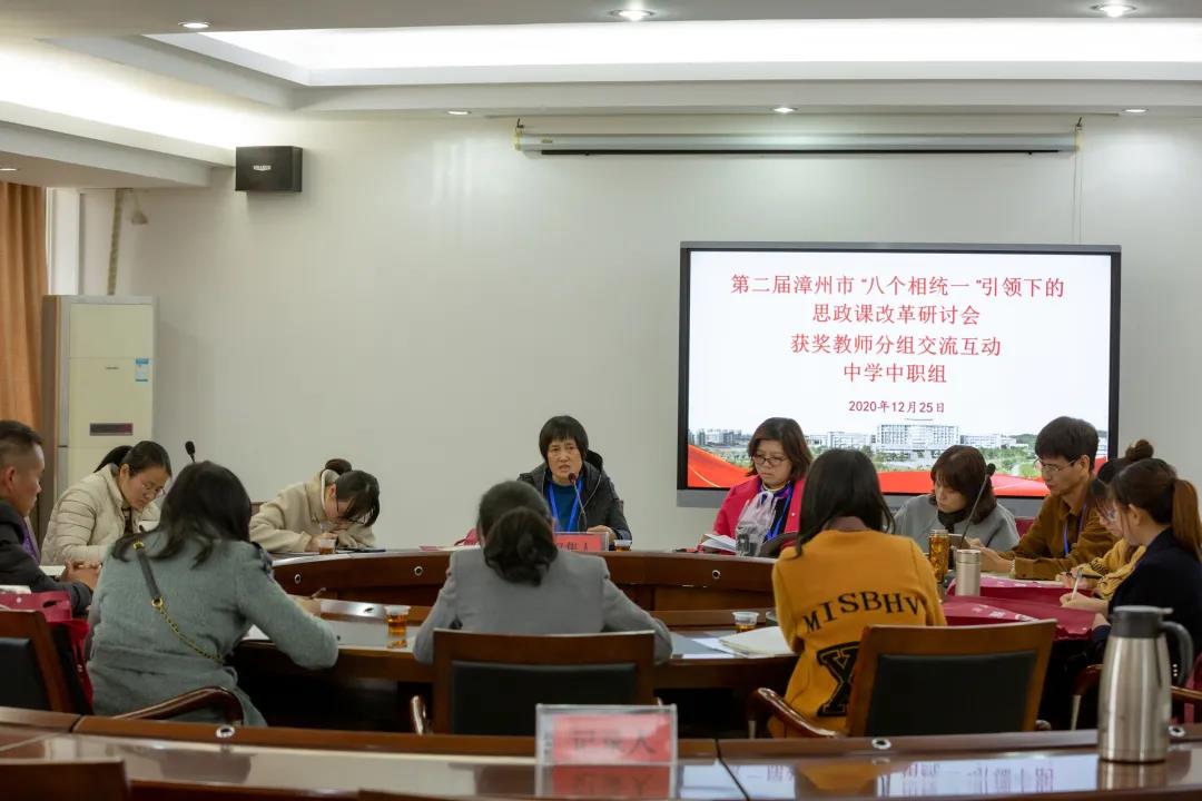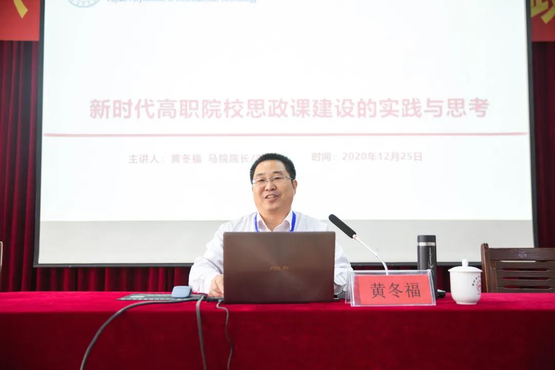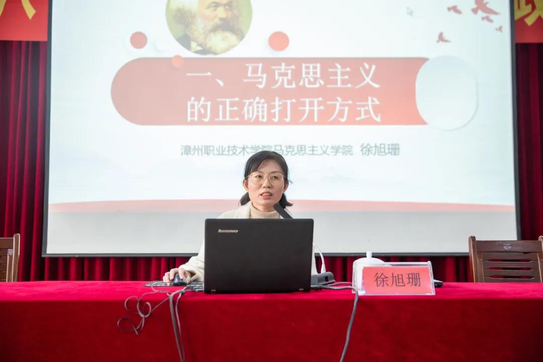 本次研讨会特邀福建信息职业技术学院马克思主义学院书记、院长、法学博士黄冬福教授作题为《新时代高职院校思政课建设的实践与思考》的特邀报告,漳州职业技术学院副教授徐旭珊、漳州卫生职业学院副教授林艳君分别作《马克思主义的正确打开方式》《民族振兴》专题教学展示。