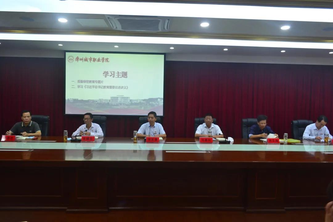 会上,党委副书记朱镇生组织与会人员认真学习了《习近平总书记教育重要论述讲义》。会议指出,《讲义》按照习近平总书记“九个坚持”重要论述安排和展开,阐述党对教育工作的全面领导是办好教育的根本保证,论述培养德智体美劳全面发展的社会主义建设者和接班人的重要意义和具体要求。习近平总书记关于教育的重要论述从根本上回答了中国特色社会主义教育发展的一系列方向性、根本性、全局性、战略性的重大问题,为中国特色社会主义教育事业指明了前进方向,为新时代教育改革发展提供了根本遵循。