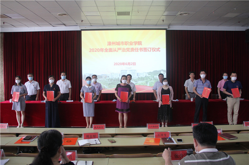 2020年6月2日下午,漳州城市职业学院在怀仁楼梯教六召开学院2020年全面从严治党工作会议。