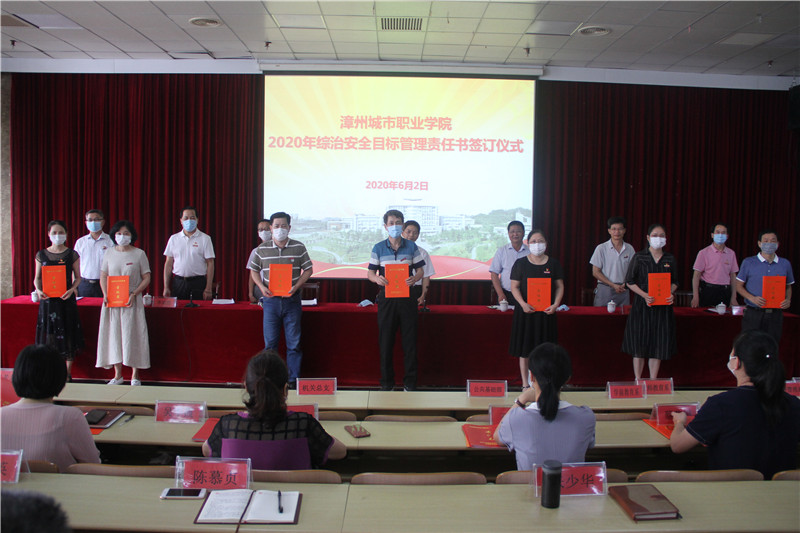 会上,学院还向各党总支、处室、系部下达了2020年《全面从严治党责任书》和《综治安全目标管理责任书》。