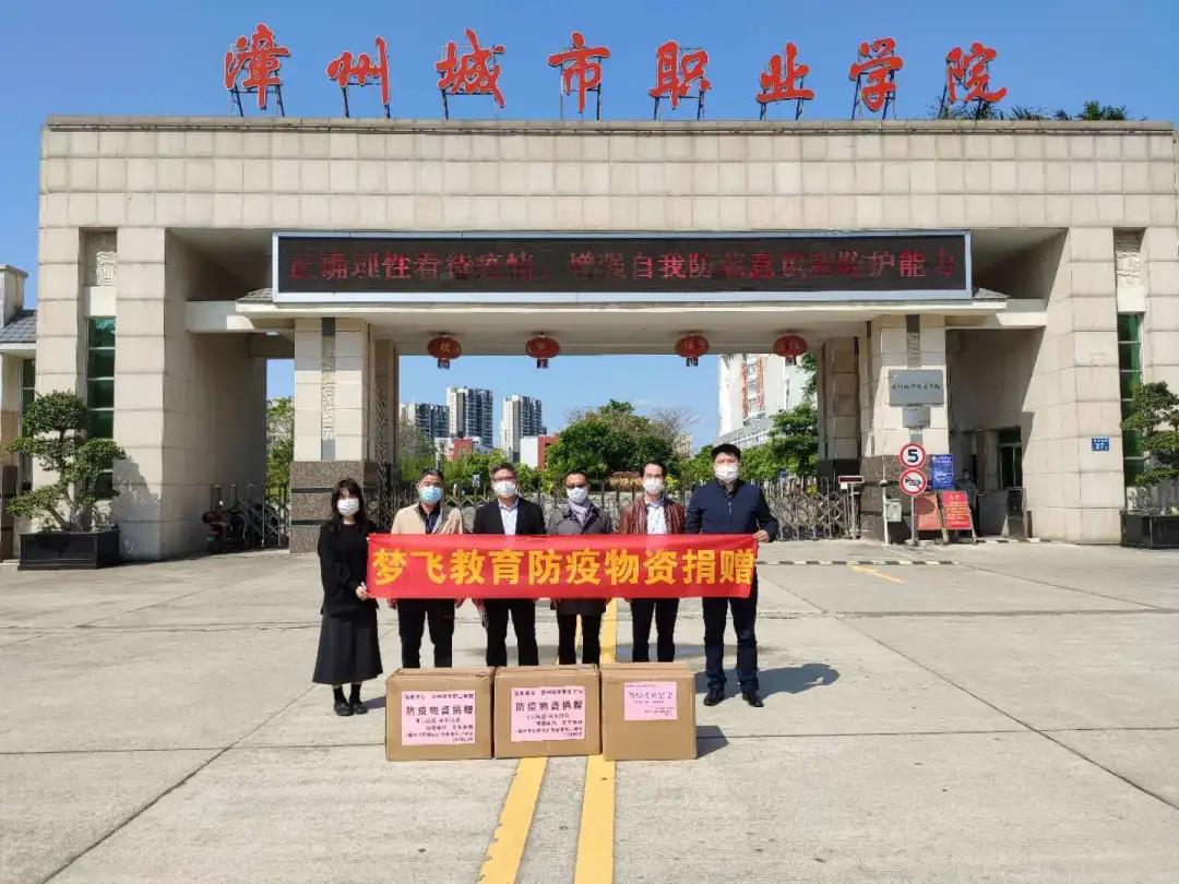 2020年3月10日,福州市台江区梦飞教育培训中心、福州市鼓楼区新知教育培训学校向漳州城市职业学院捐赠疫情防控物资,助力学院疫情防控工作。