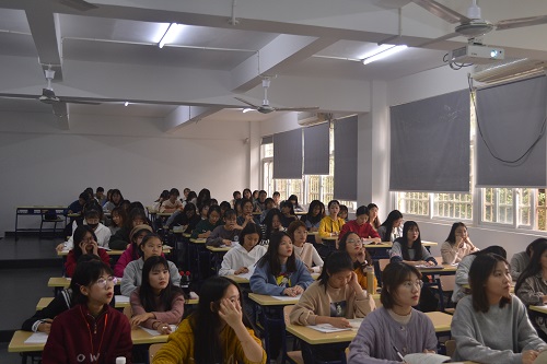 11月29日下午,漳州城市职业学院党委委员、副院长郑文平在博学楼107教室为2018级学前教育专业和艺术教育专业学生讲授“坚定不移推进祖国和平统一”专题形势与政策教育课。