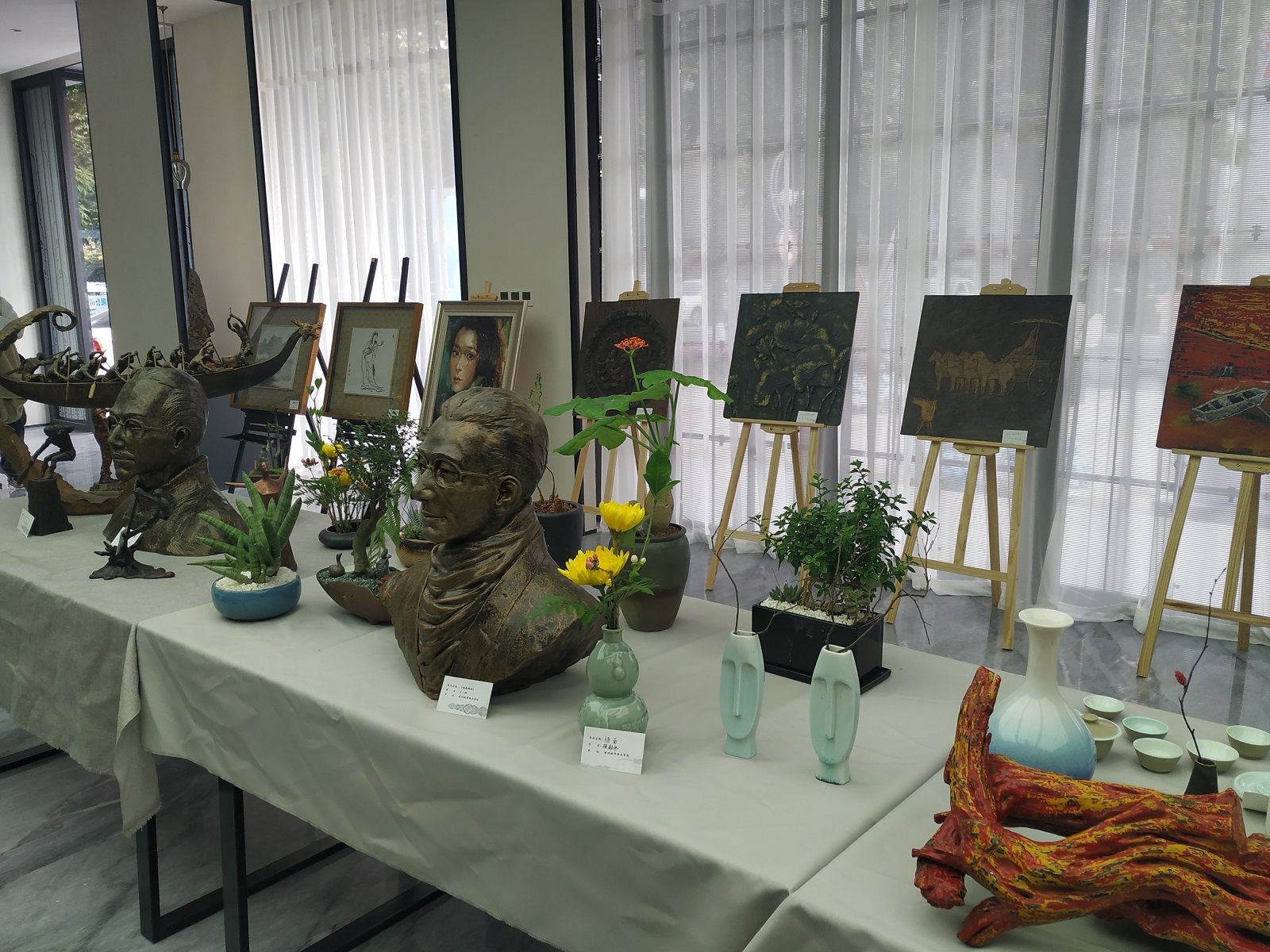 11月18日,漳州城市职业学院艺术展在漳州宾馆的文化旅游体验中心举行,展出了雕塑、浮雕、漆画艺术、陶艺、包装艺术设计、插花、木刻版画、装饰画等100多件极具漳州特色的文创作品。作品主要出自我院文化艺术创意系、学期教育系和园林园艺系师生之手。