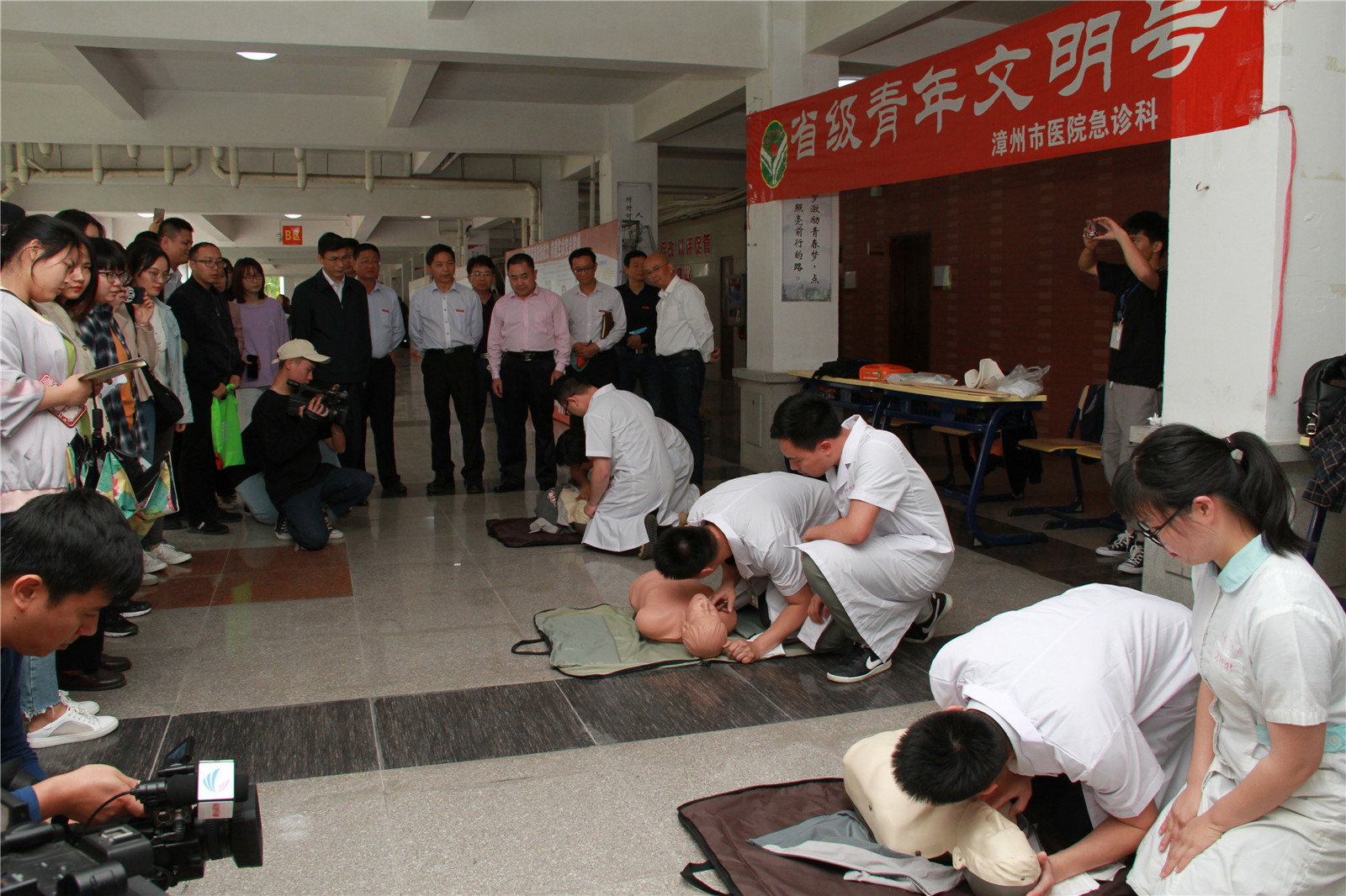 我院党委副书记朱镇生、副院长林良海,市政府办、市委宣传部、市科技局、教育局、财政局、住建局、民政局、卫健委、应急管理局、科协、团市委、红十字会、消防支队、武警支队等部分市抗震救灾指挥部成员单位领导,市医院和龙江救援队的同志以及漳州城市职业学院的师生代表等近千人参加了启动仪式。