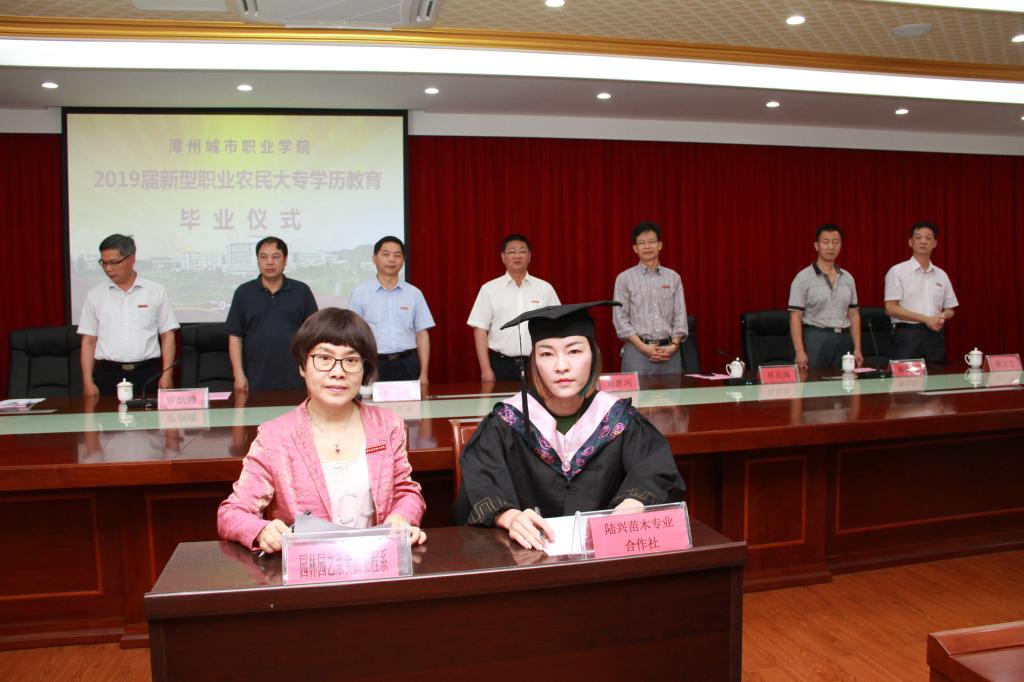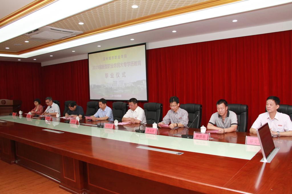 4月29日上午,漳州城市职业学院在怀仁楼4楼会议室举行首届新型职业农民专科学历教育园艺技术专业班毕业仪式。学院党委书记洪亚勇、院长刘惠河、副院长林良海、漳州市农业农村局副处级调研员罗炳腾、科教科林世忠科长,园林园艺系、继续教育与职业培训中心等相关部门负责人、老师及2019届新型职业农民园艺技术专业专科学历教育的近60名学员参加仪式。仪式由党委委员、人事处处长刘展顺主持。