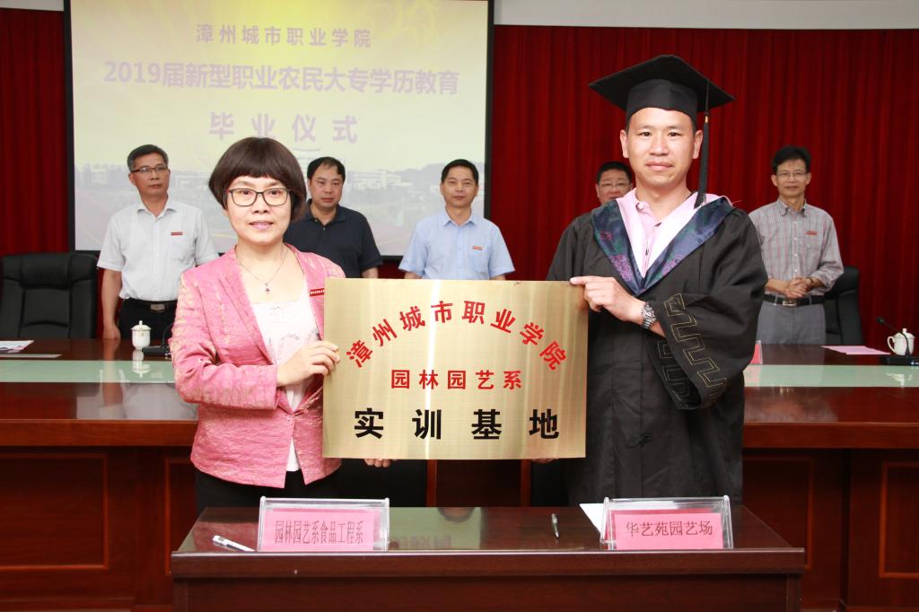 毕业仪式上,学院还与漳州市龙文区朝阳镇西洋村、龙岩市上杭县溪口镇石铭村签订乡村振兴战略合作框架协议。园林园艺系与厦门市海沧区华艺苑园艺场、龙海市陆兴苗木专业合作社签订了实训基地建设协议,进行了授牌仪式。