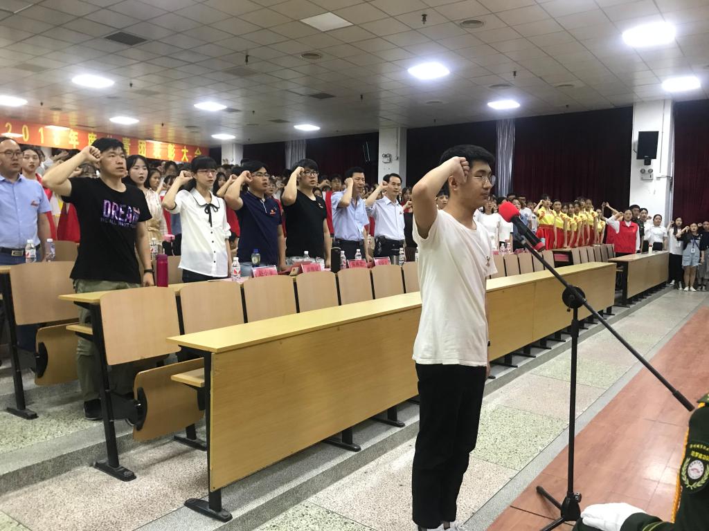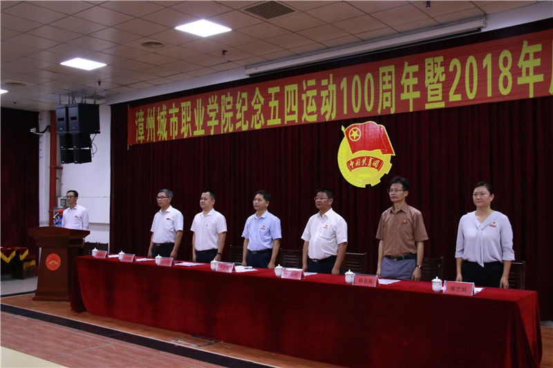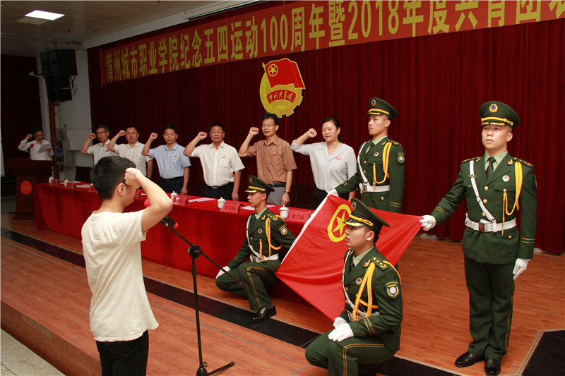 最后,全体团员重温入团誓词。我院团员青年代表,面向庄严的团旗,高举右拳,以铮铮誓言,重温入团初心。漳州城市职业学院纪念五四运动100周年暨2018年度共青团表彰大会圆满落下帷幕。