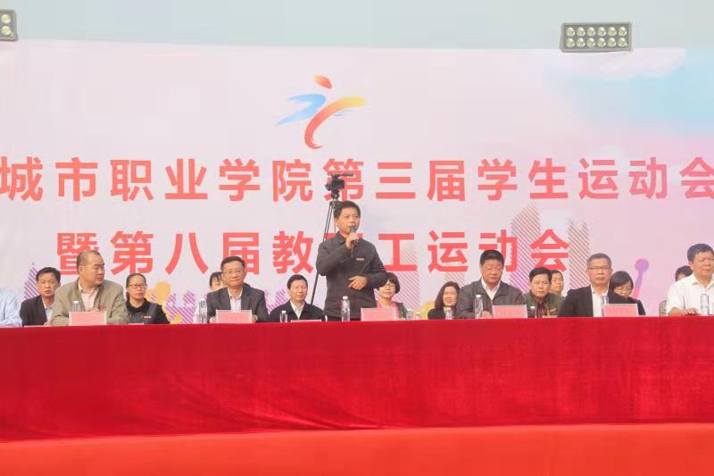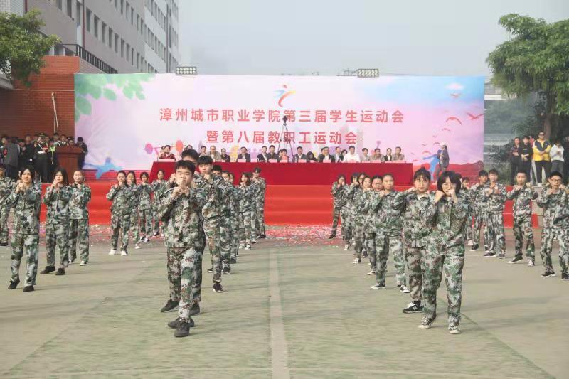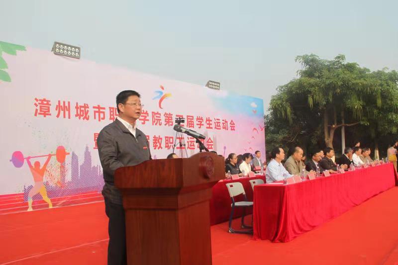 2018年11月29日上午,漳州城市职业学院第三届学生运动会暨第八届教职工运动会在学院操场隆重开幕。学院党委书记洪亚勇、院长刘惠河、党委副书记朱镇生、副院长林良海,各处室、各系部负责人及师生代表出席开幕式。开幕式由林良海副院长主持。