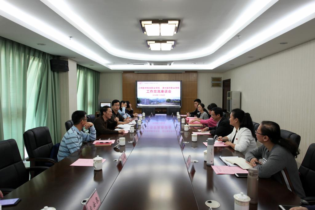 为进一步做好省级文明校园创建工作,2018年11月8日,我院党委副书记朱镇生带领相关处室人员一行7人赴第十二届省级文明学校、第一届省级文明校园——三明医学科技职业学院参观学习。三明医学科技职业学院党委书记王怀毅、副院长赖焕标、党委工作部、人事处、学生工作处、团委、办公室及教务处相关人员热情接待了我院考察学习人员。