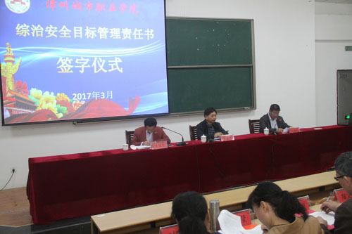 会上,党委书记洪亚勇、院长刘惠河与各处(室)、系(部)负责人签订了《2017年漳州城市职业学院党风廉政责任书》和《综治安全目标管理责任书》。