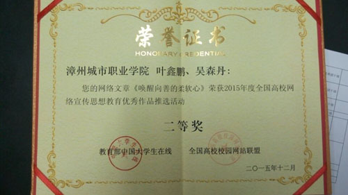 我院积极组织师生参加比赛。近日,评选结果公布,我院叶鑫鹏老师和吴森丹的网络文章《唤醒向善的若软心》荣获2015年度全国高校网络宣传思想教育优秀作品推选活动二等奖。