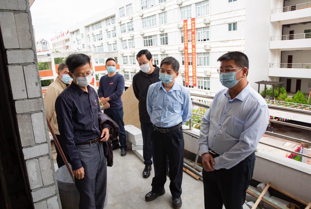 洪亚勇一行先后调研了学术报告厅、智慧教室、东门消防通道硬化项目、隔离观察室等重点项目建设情况,每到一处施工现场,学院领导都详细地询问了项目的建设进度及安全管理等相关事宜,就项目施工难点进行现场办公。