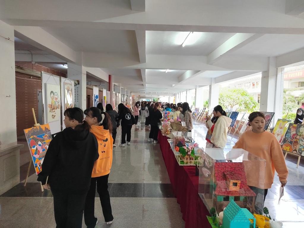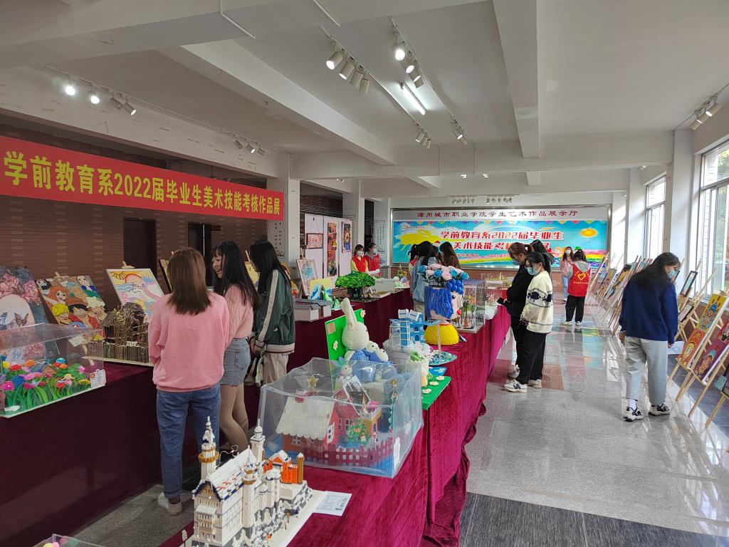 招聘会当天,学前教育系在博学楼一楼展出了2022届学前教育专业毕业生美术技能考核作品,吸引了用人单位和广大师生驻足观赏,充分展示了学前教育系的教学成果和毕业生的专业能力和素养。