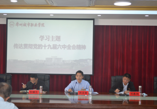 2021年12月14日,漳州城市职业学院党委书记洪亚勇主持召开党委理论学习中心组2021年度第二十次学习(扩大)会议,学习贯彻党的十九届六中全会精神。院长刘惠河等学院领导班子成员、各处(室)负责人、各系(部)党政负责人参加会议。