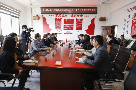 2022年3月11日,漳州城市职业学院党委书记洪亚勇、院长刘惠河带领班子成员前往漳浦县官浔镇溪坂村进行调研交流。漳浦县委常委、宣传部长戴文利与乡镇有关领导参加调研。