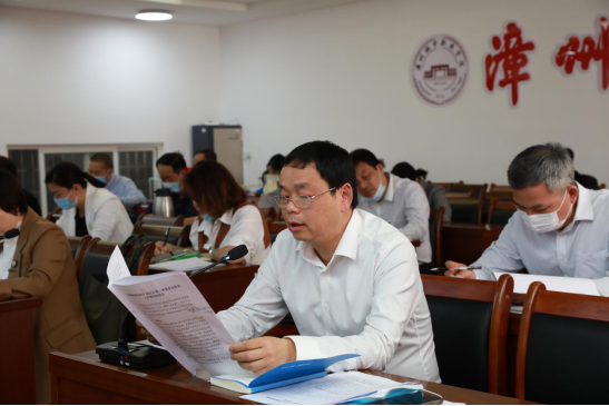 2022年4月7日下午,漳州城市职业学院在怀仁楼四楼会议室召开2022年第二季度安全稳定专题工作会议,院长刘惠河主持会议并讲话,党委副书记朱镇生回顾2022年第一季度的安全稳定工作情况并对2022年第二季度工作做了具体安排。副院长林良海、郑文平,各处(室)负责人、各系(部)书记参加了会议。