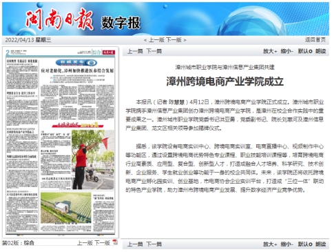 学院携手漳州信息产业集团创建漳州跨境电商产业学院在新华社、央视频客户端、闽南日报(第2版)等媒体推出。