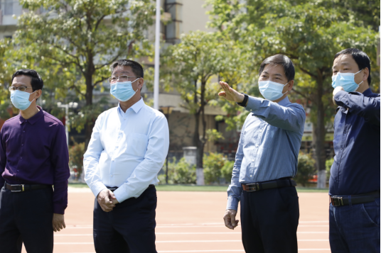 为全面筑牢疫情防控防线,2022年4月8日上午,漳州城市职业学院党委书记洪亚勇、院长刘惠河深入校园一线检查指导线下复学疫情防控工作。