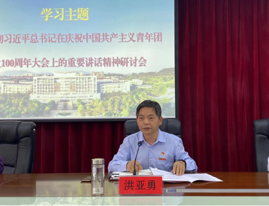 2022年5月17日下午,漳州城市职业学院组织召开2022年党委理论学习中心组第十一次学习(扩大)会议,围绕习近平总书记在庆祝中国共产主义青年团成立100周年大会上的重要讲话精神开展专题学习研讨。学院党委书记洪亚勇主持会议并讲话,学院党委委员、各处(室)负责人、各系(部)党政负责人参加会议。