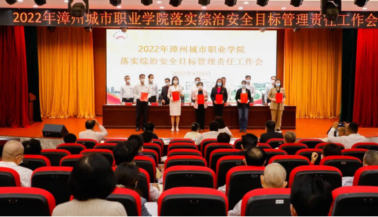 2022年4月6日下午,漳州城市职业学院在怀仁楼丹霞学术报告厅召开2022年落实综治安全目标管理责任工作会议。学院党委委员、纪委委员、副科级及以上干部、各党支部书记参加会议。院长刘惠河主持会议并讲话。