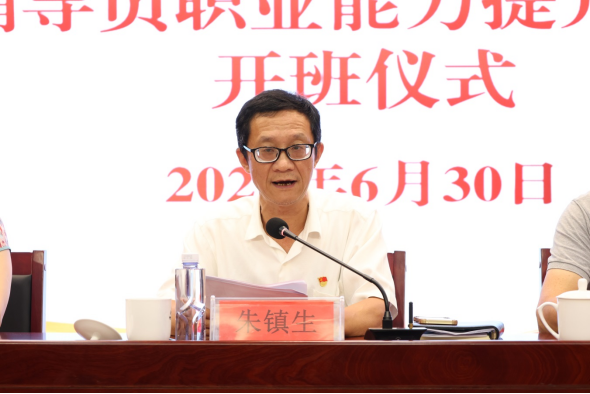 2022年6月30日,漳州城市职业学院在丹霞厅组织2022年辅导员职业能力提升专题培训班开班仪式。学院党委副书记朱镇生、各系书记、各系负责学生工作领导、全体辅导员、学生工作处全体人员参加开班仪式。会议由学生工作处处长吴育清主持。