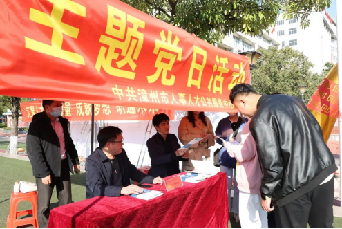 漳州市人力资源和社会保障局在供需见面会现场设置政策宣传服务点,进行高校毕业生政策宣传。
