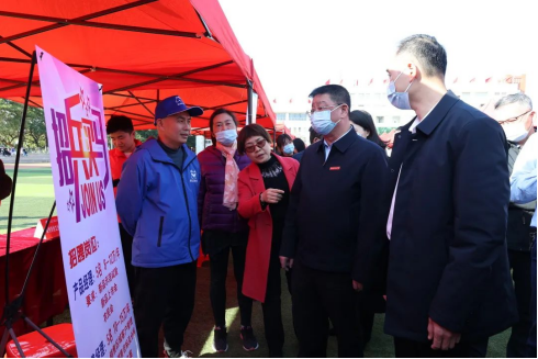 2023年2月22日下午,漳州城市职业学院在田径场举办2023届毕业生供需见面会。学院党委书记刘惠河、院长翁文等学院党委委员,漳州市大中专毕业生就业工作领导小组领导,长泰区人力资源和社会保障局领导莅临现场指导工作。