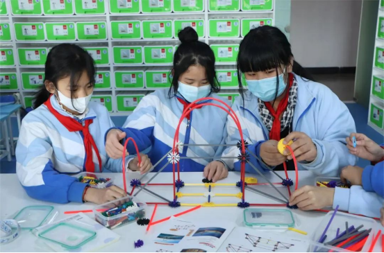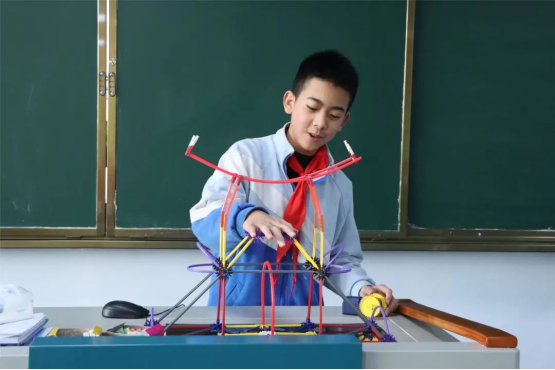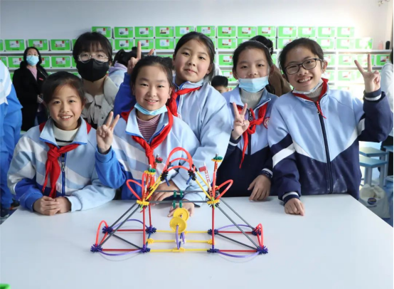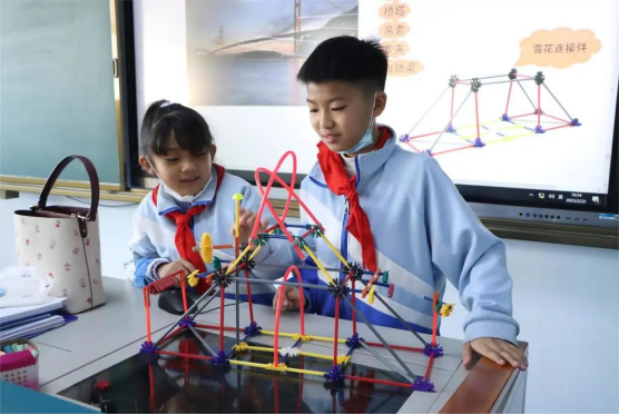 小学生们在欢乐的互动中,化身工程师,通过小组合作,搭建了富有创意的桥梁模型,各组还分享了搭建成果。
