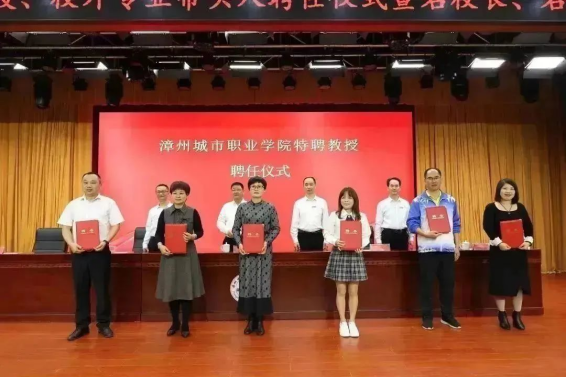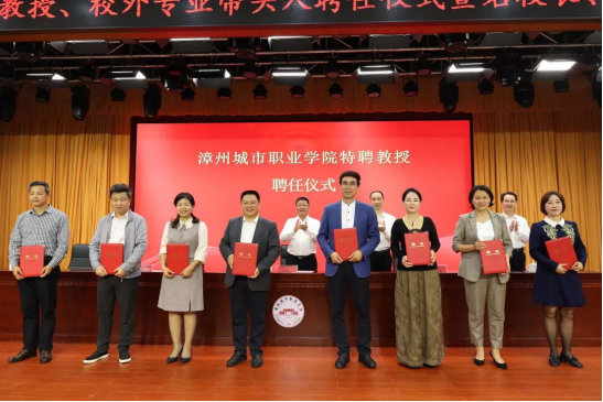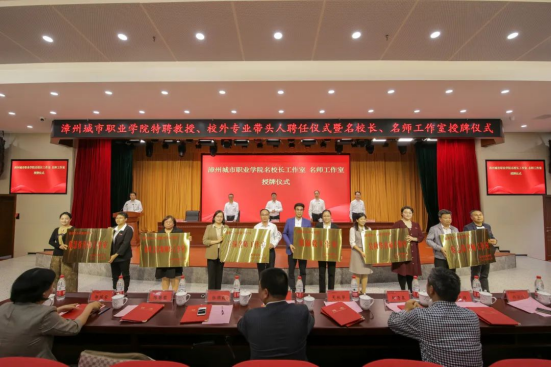 2023年3月24日下午,漳州城市职业学院在丹霞厅举行特聘教授、校外专业带头人聘任仪式暨名校长、名师工作室授牌仪式。学院党委书记刘惠河、院长翁文,党委副书记朱镇生、副院长郑文平出席仪式。副院长吴锦城主持仪式。