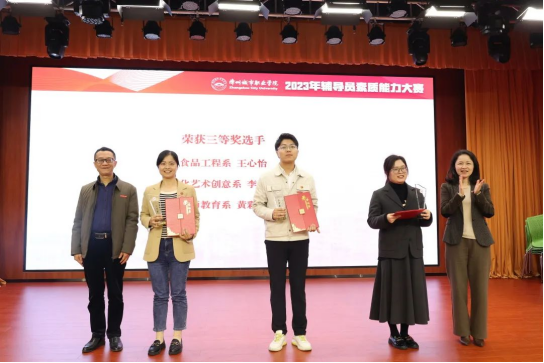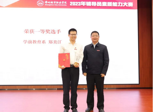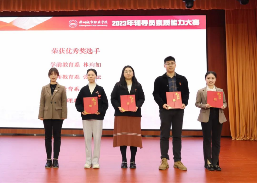 2023年3月30日,漳州城市职业学院2022-2023学年辅导员素质能力大赛在丹霞厅圆满结束。学院党委书记刘惠河、院长翁文,党委副书记朱镇生、副院长陆志洪出席颁奖仪式并为获奖单位和个人颁奖。