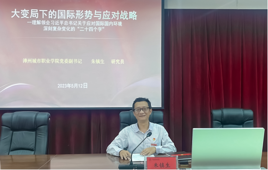 学院党委副书记朱镇生还为所在支部党员、入党积极分子作了《大变局下的国际形势与应对战略——理解领会习近平总书记关于应对国际国内环境深刻复杂变化的“二十四个字”》专题党课。朱镇生同志深入浅出地回顾了世界发展史上国际形势的变乱交织和国家力量的此消彼长,以及我国把握重要时间节点,与时俱进制定“一个抓手”“两个构建”“三大倡议”不同外交政策的科学应变之举。他认为,中国要在准确识变、科学应变的基础上主动求变,面对全球性挑战增多、全球治理赤字突出的局面,要积极运筹大国外交、大国关系,推动与周边国家紧密的合作关系。