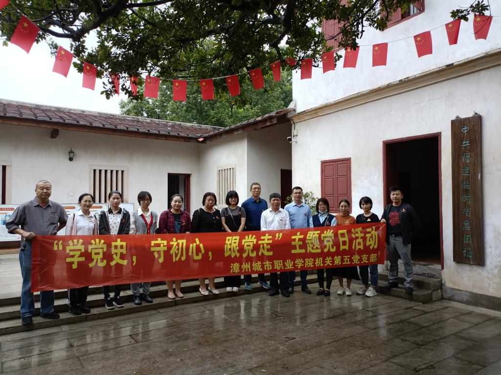 漳州城市职业学院机关第五党支部持续开展“学党史、守初心、跟党走”主题党日活动,2021年4月28日下午,机关第五党支部一行前往漳州城区振成巷32号参观中共福建临时省委旧址。大家参观革命战争年代中共福建省委组织发展的烽火征程专题陈列的同时,认真聆听了讲解员对漳州早期革命史的生动介绍,深入了解了漳州早期革命史在福建革命历史上的光辉印记,深刻认识了新民主主义革命初期漳州革命的艰辛历程以及漳州人民在党组织领导下为发展闽南游击区、保卫土地革命果实作出了巨大牺牲和伟大贡献。