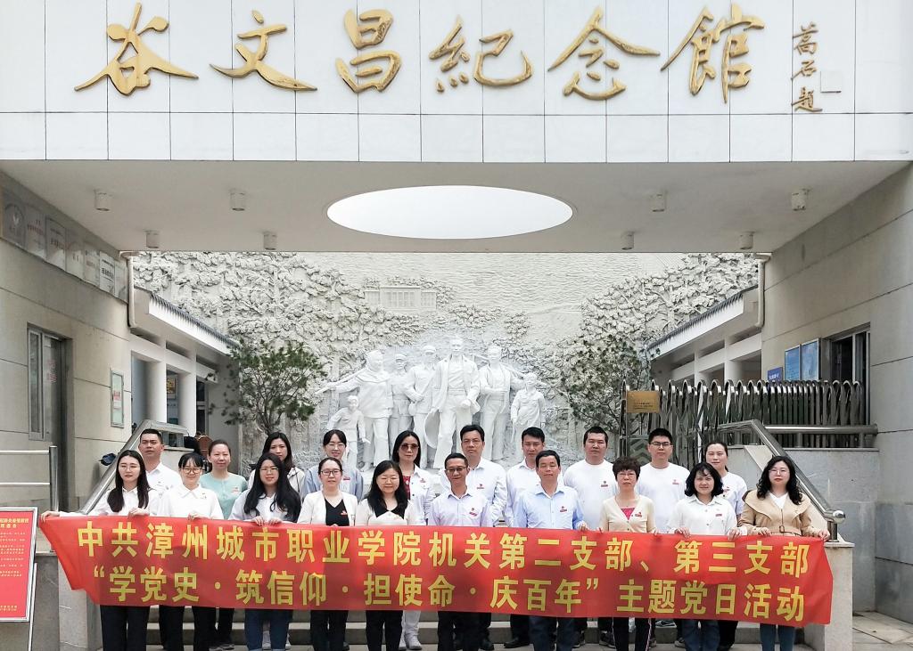 为庆祝中国共产党成立100周年,深切缅怀革命先烈,赓续共产党人精神命脉,筑牢信仰根基,2021年4月18日,漳州城市职业学院第二支部、第三支部赴谷文昌纪念馆,共建开展“学党史·筑信仰·担使命·庆百年”主题党日活动。