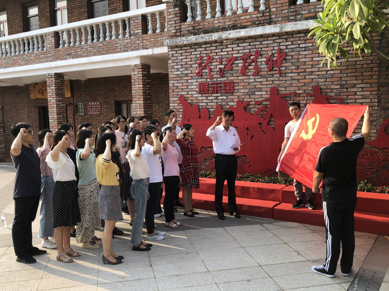 教师教育系全体党员怀着无比崇敬的心情,先是参观了展示馆中承载着历史的老照片、旧报纸、旧物件,认真听取讲解员关于“龙江精神”的详细讲解,重温龙江人 “团结协作、无私奉献、顾全大局、舍己为人”的龙江精神。随后,党总支书记蔡文艺同志带领全体党员在“龙江精神”展示馆前进行宣誓。全体党员整齐列队面向党旗,重温入党誓词。