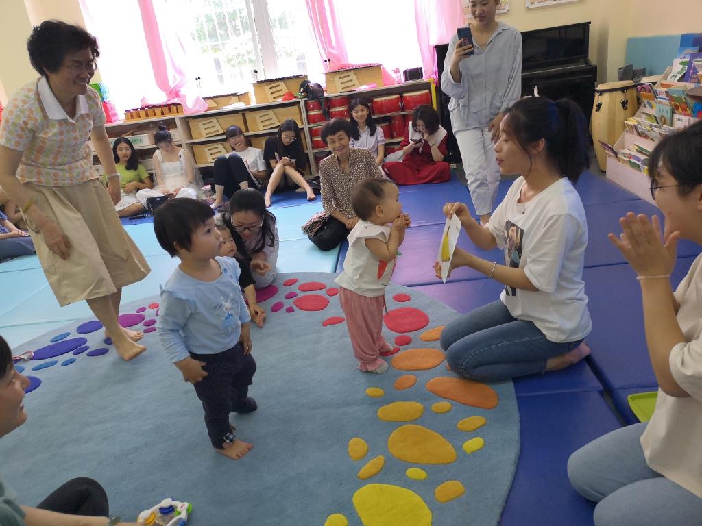 本次活动由16级早教学生担任课程的主教老师及助教老师,共开展两节早教课程。在第一节课中,老师以小青蛙为课堂导入成功吸引了宝宝们的注意力,并以为小青蛙制作三明治的亲子互动,培养婴幼儿的独立性和动作能力。第二节课上,老师以活泼、可爱的音乐律动引导宝宝们在音乐中放松情绪,增进亲子间的亲密交流。在音乐卡片环节中,老师利用婴幼儿最喜爱的动物卡片激发其语言思维能力,锻炼婴幼儿的记忆力。课程结束后,学院督导组成员林精华副教授对此次活动进行了点评,她对同学们的专业素养和专业热情进行了充分的肯定,对早期教育专业敢于尝试开放式教学,培养学生教育教学能力的举措点赞。鼓励同学们要继续坚持勤勉、创新的优良学风,努力成为一名优秀的早教教师。