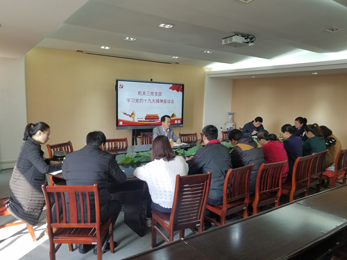 2017年12月29日上午10:00,学院机关三党支部在怀仁楼七楼会议室召开学习党的十九大精神座谈会。机关第三党支部全体党员参加座谈会。会议由支部书记郑文平主持。