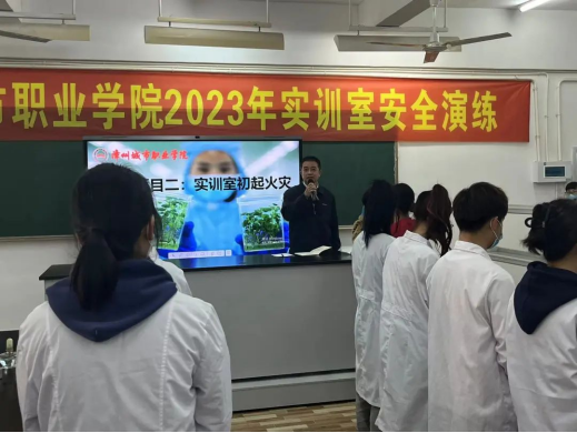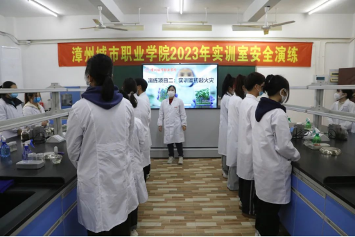为进一步加强实训室安全教育与管理,切实提高师生的实训室安全意识及自保能力、疏散能力,有效防范和消除安全隐患,最大限度减少实训室安全事故,保障校园安全、师生生命财产安全,2023年2月23日下午,漳州城市职业学院开展2023年实训室安全演练。学院副院长吴锦城到场指导。科研与实训中心、安全与保卫处、园林园艺系、食品工程系相关负责同志,各系实训室主任、管理员以及师生代表参加演练。