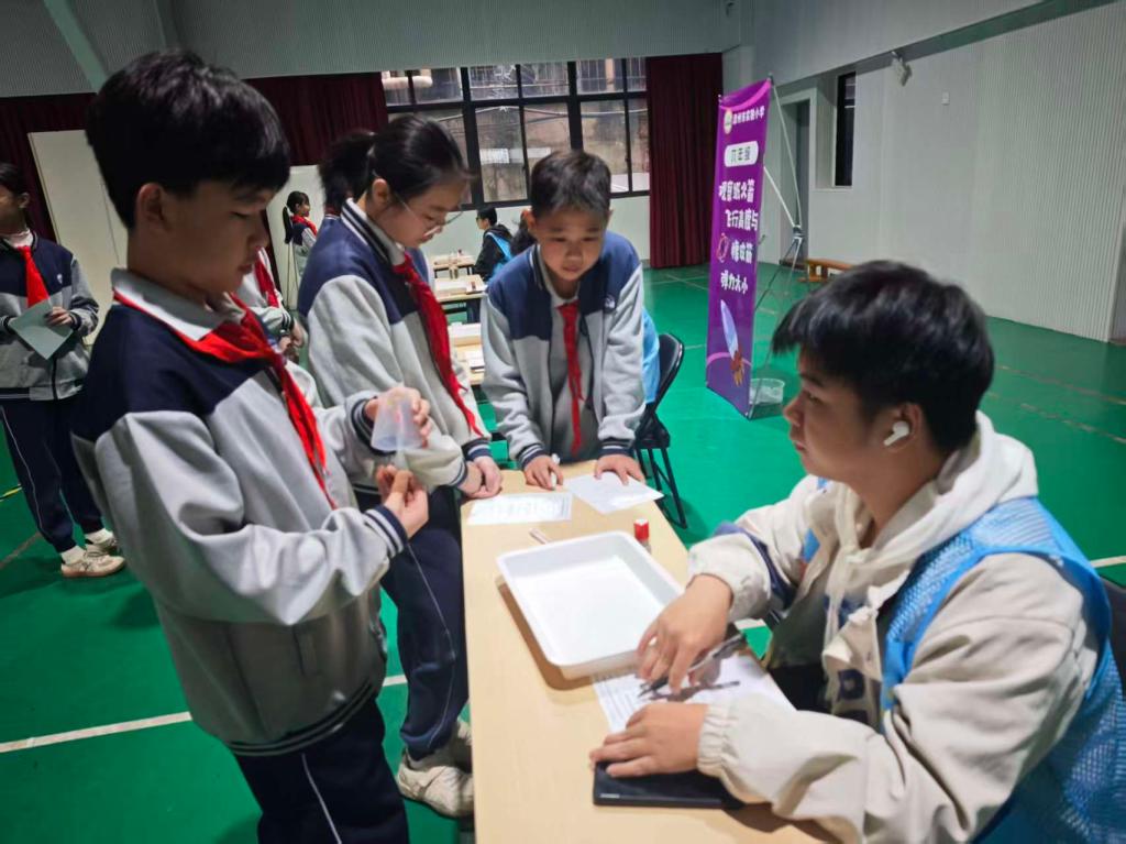 我校学生在担任测评员过程中,耐心引导小学生完成实验操作,细致观察记录其操作过程,并对实验操作规范性、问题回答准确性等进行综合评价。