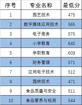 2020年高职分类考试面向高中毕业生类最低投档分