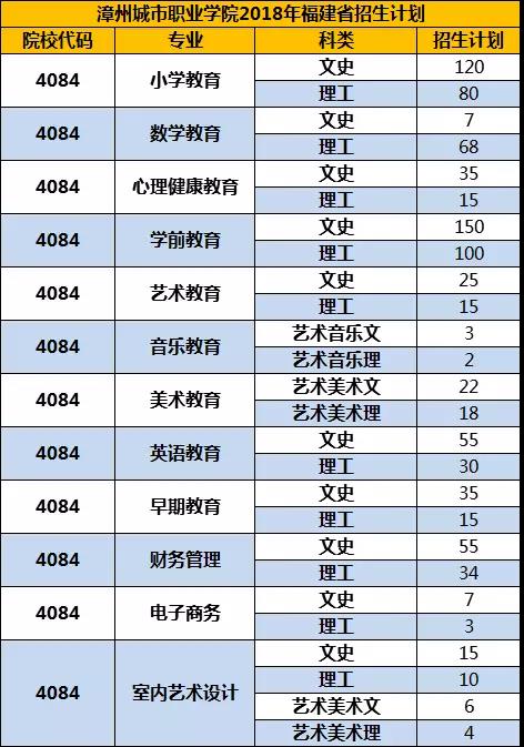 漳州城市职业学院2018年福建省普通高考招生计划